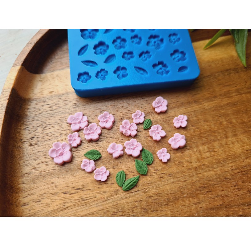Silicone mold, Sakura mini, flowers, leaves, style 3, ~ 0.4-0.9 cm, H:0.1-0.3 cm