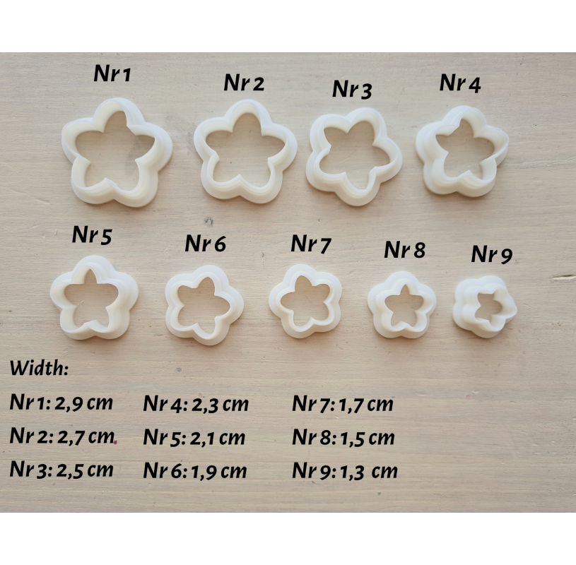 "Flower, style 15", set of 9 cutters, one clay cutter or FULL set