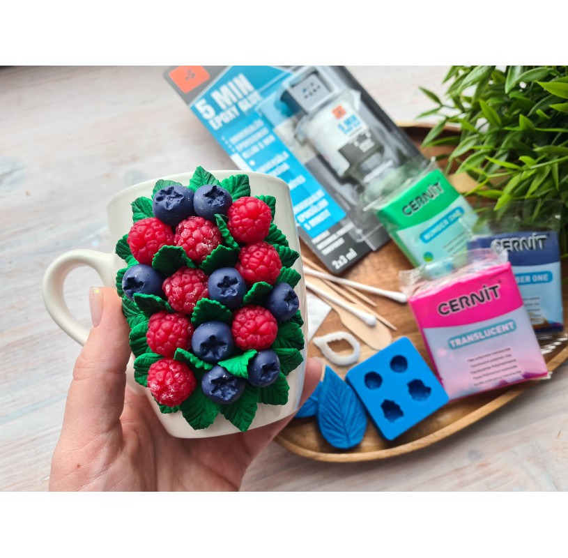 Creative set to decorate mug with polymer clay berries and leaves decor with a free video master class