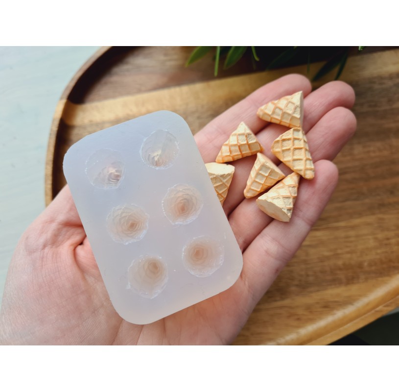Silicone mold, Ice cream cone, 1:6 scale, style 1, 6 elements, ~ Ø 1.4 cm, H:1.9 cm
