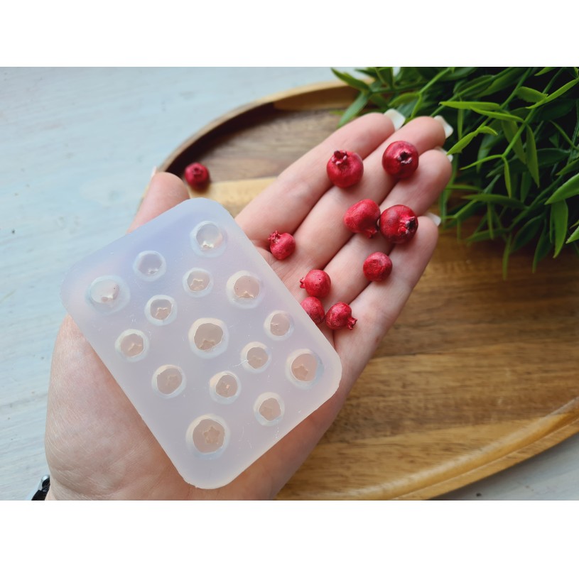 Silicone mold, Pomegranate, scale 1:6, style 3, 15 elements, ~ Ø 0.9-1.2 cm, H:0.9-1.3 cm