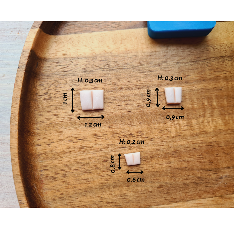 Silicone mold, Rabbit or mouse teeth, 3 elements, ~ 0.6-1 cm, H:0.3 cm
