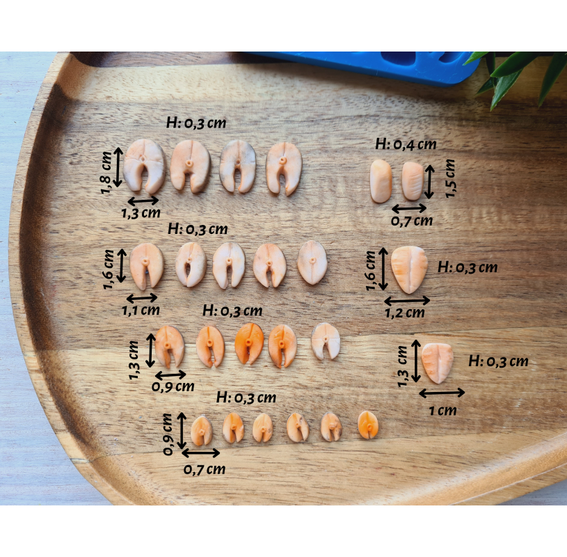 Silicone mold, Salmon slice, 1:6 miniature, 24 elements, ~ 0.7-1.8 cm, H:0.3 cm