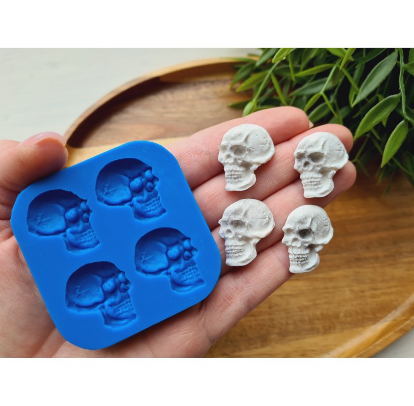 Silicone mold, Skull, style 9, 4 elements, ~ 2.1*2.4 cm, H:0.6 cm