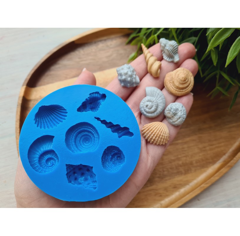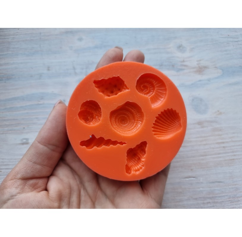 Silicone mold, Seashell, style 3, artificial, 7 elements, ~ 1.3-3.2 cm, H:0.7-0.9 cm