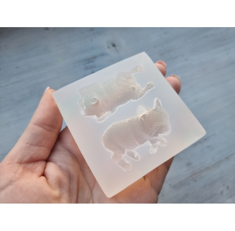 Silicone mold, Dog, French Bulldog, style 2, 2 elements, ~ 2.5*5.1 cm, H:1.3-1.8 cm