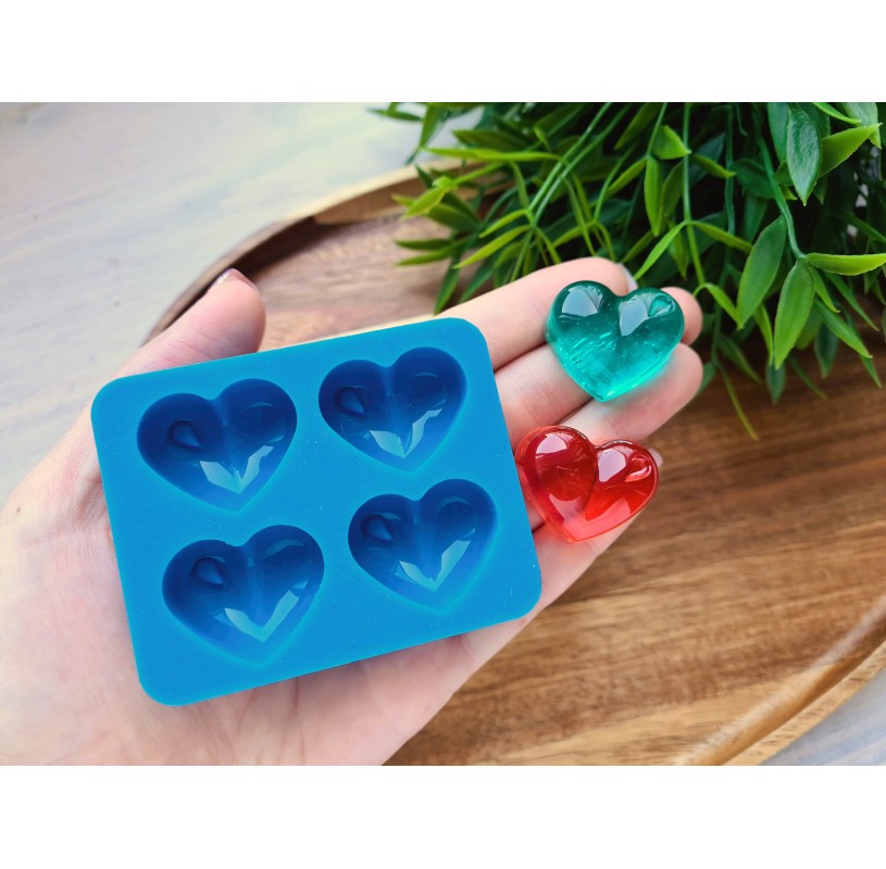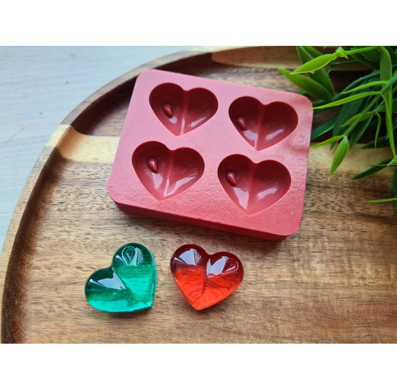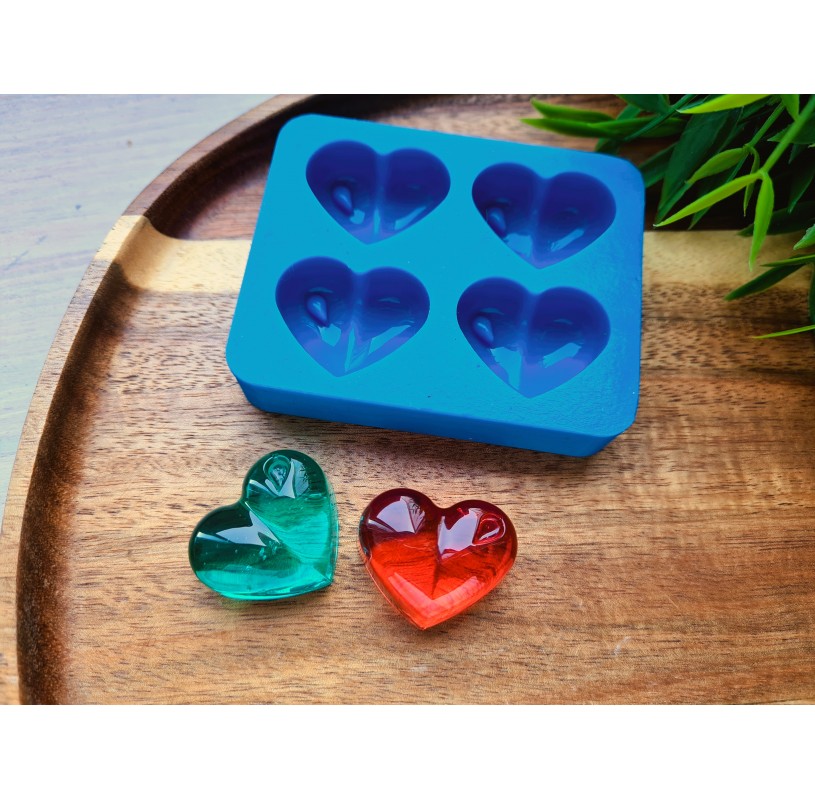 Silicone mold, Heart, style 11, 4 elements, ~ 2.3*2.8 cm, H:1.1 cm